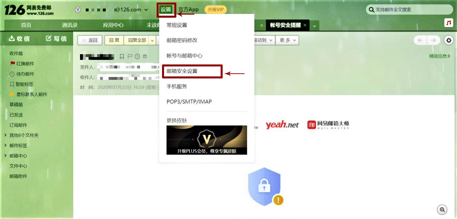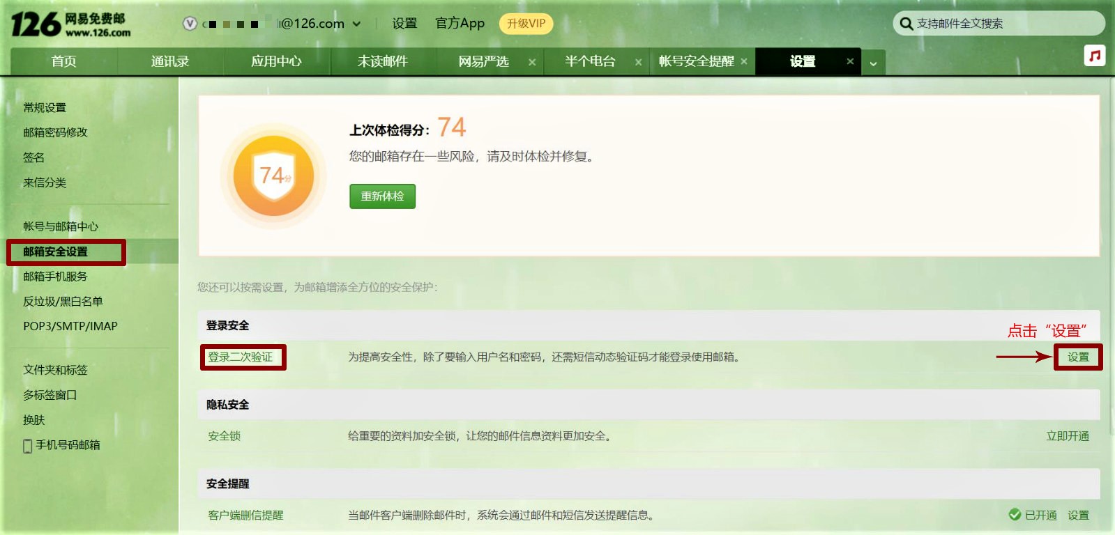 1. 登录进入邮箱,点击“设置”--“邮箱安全设置”