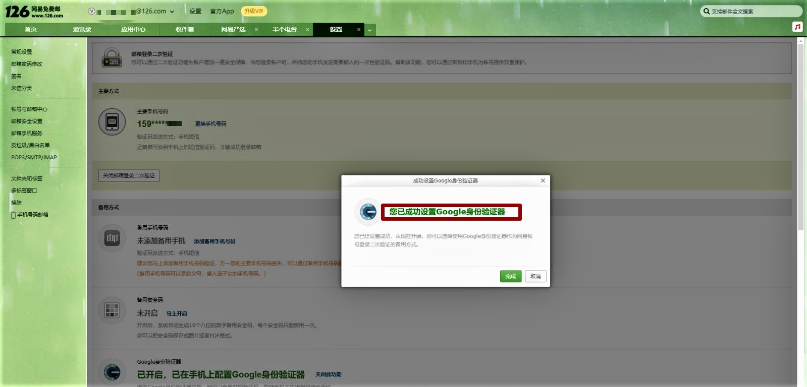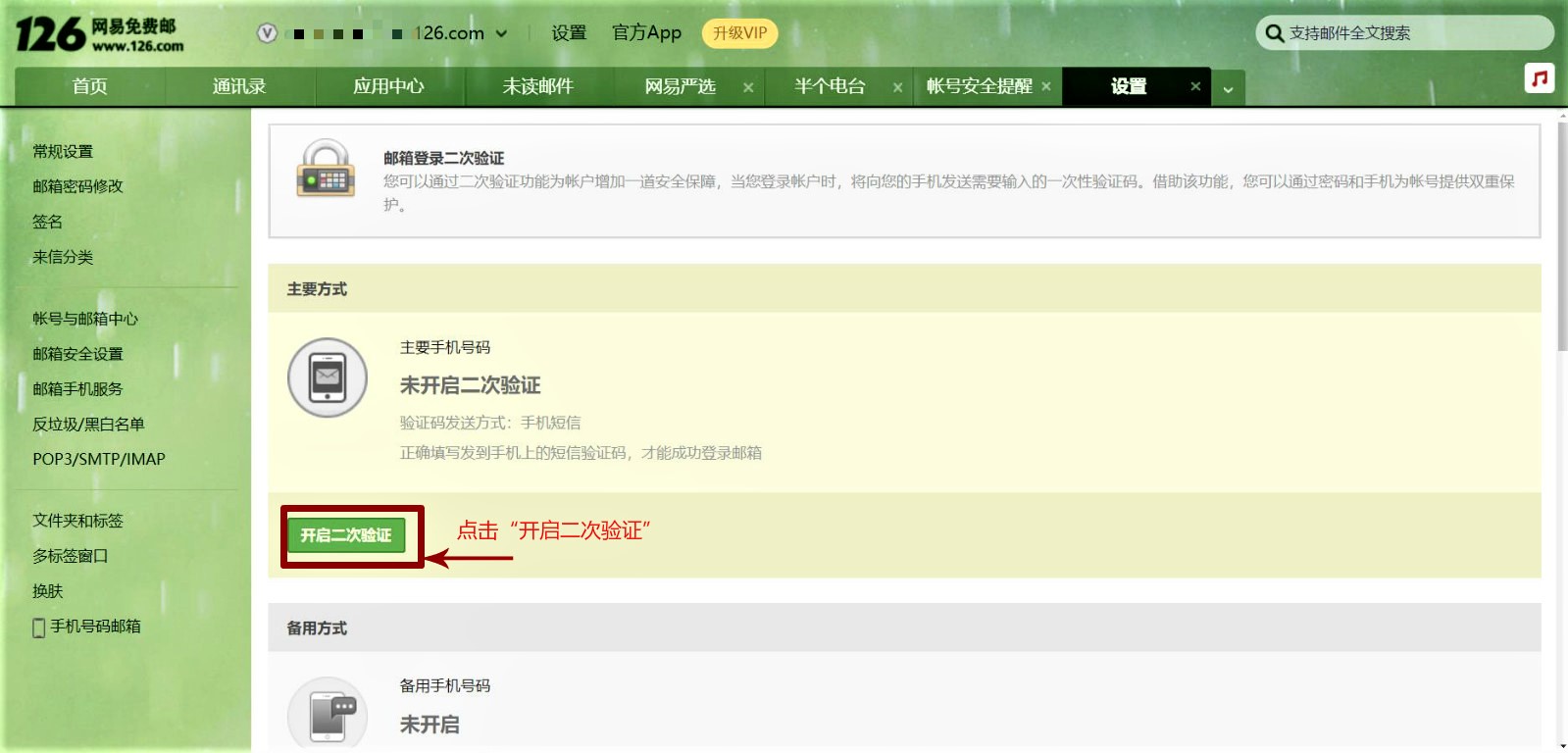 2. 在邮箱安全设置界面,点击登录二次验证一栏的“设置”