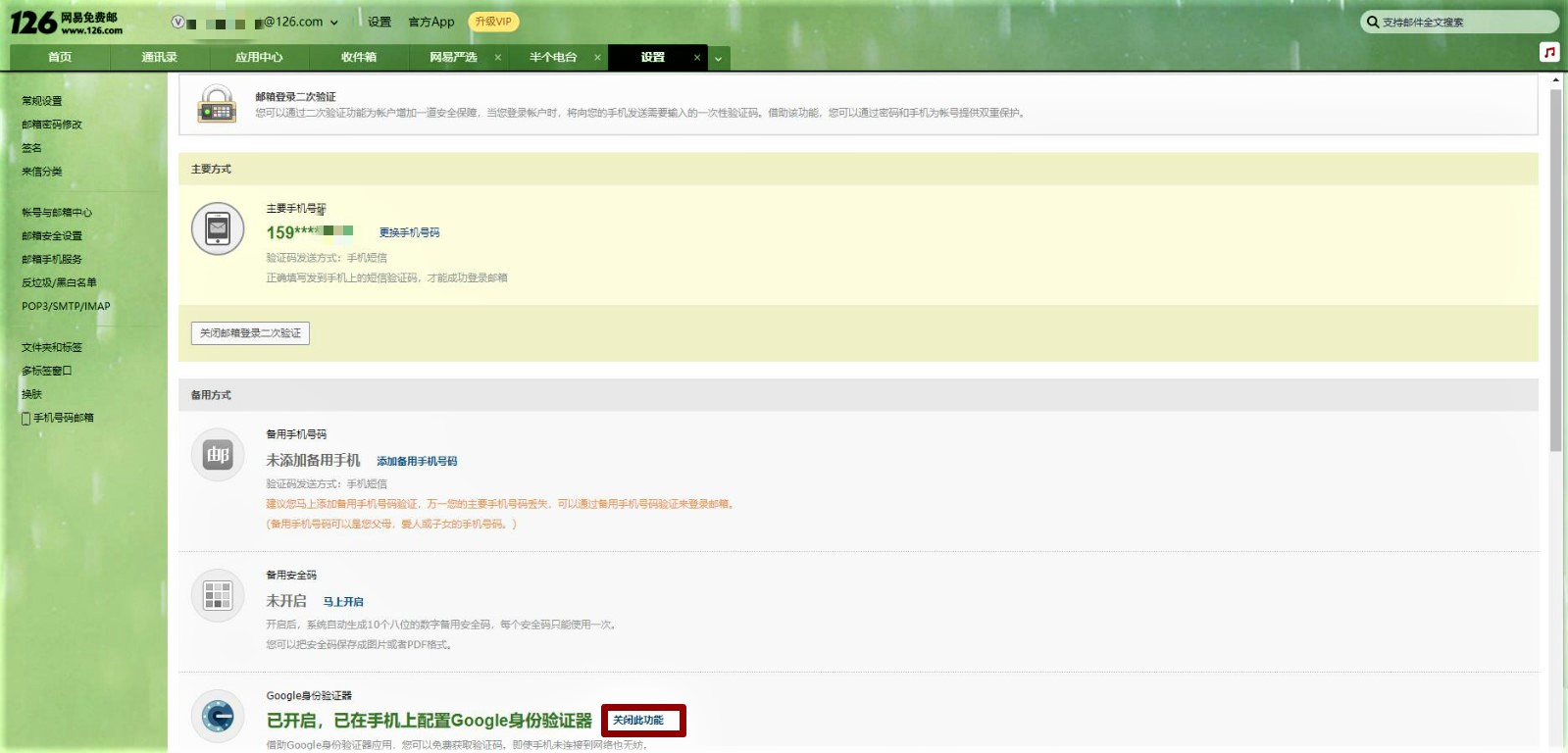 8. 如需关闭Google身份验证功能,直接点击“关闭此功能”