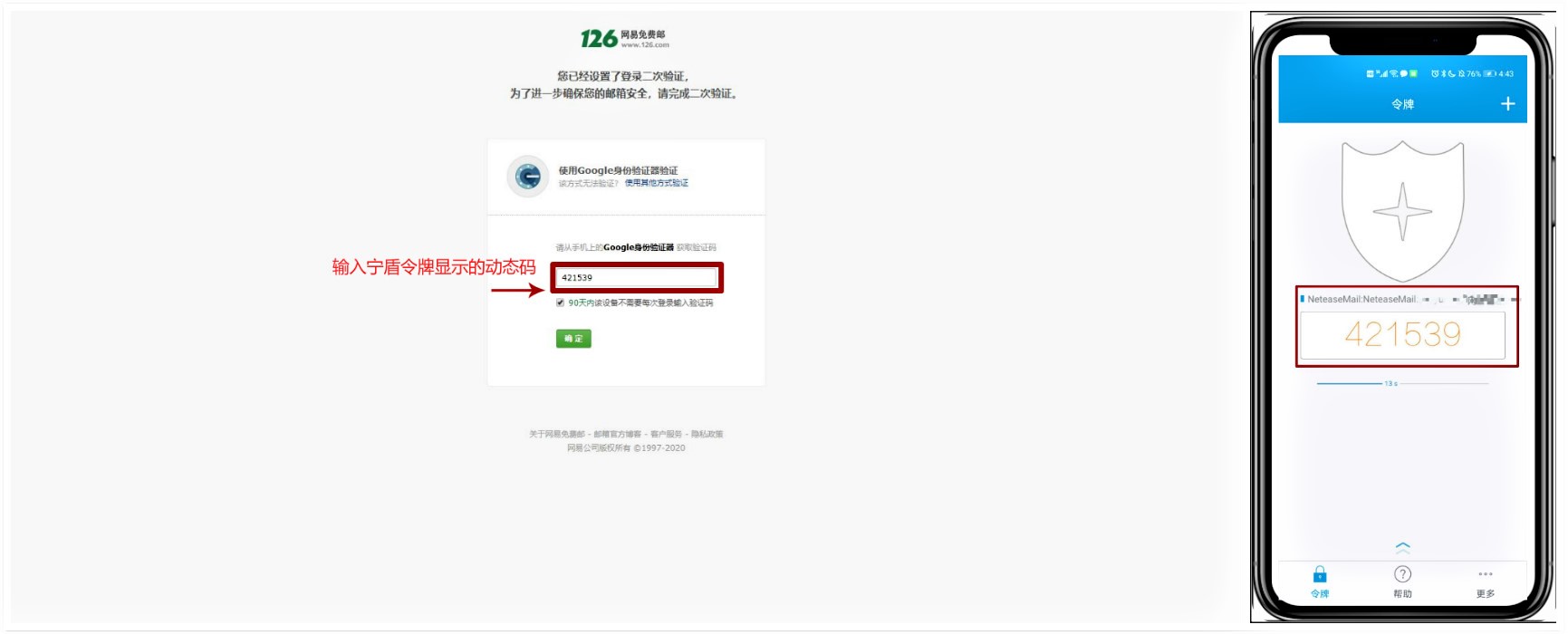 4. 输入宁盾令牌显示的6位动态码实现登录